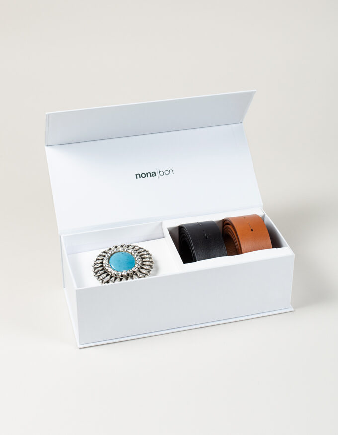 Cinturó Queens Aqua. Pack de sivella amb pedra turquesa y dues corretges intercambiables.