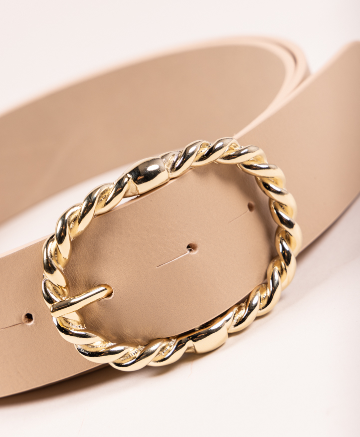 Elegant cinturó de dona fabricat amb pell de primera qualitat amb preciosa sivella daurada en forma oval. El seu disseny de cordill entrellaçat afegeix un toc artesanal, fusionant allò clàssic amb allò modern. És el cinturó perfecte per complementar qualsevol outfit amb un aire sofisticat i distintiu.
