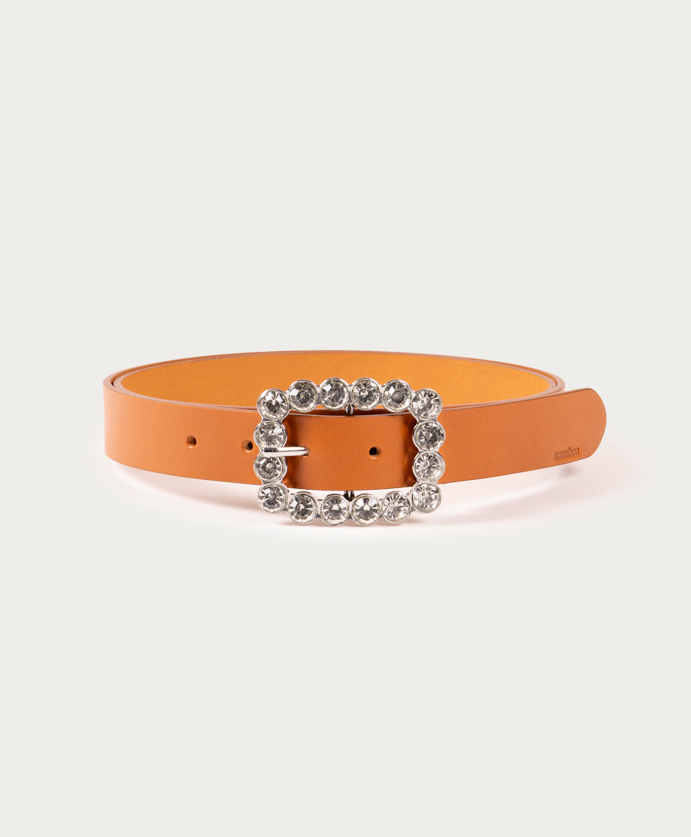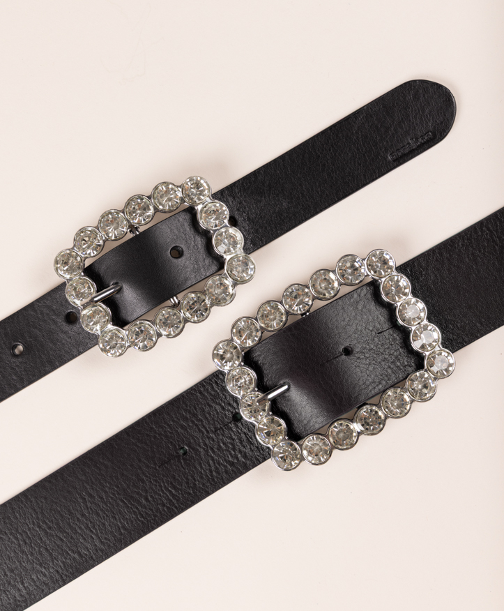 Elegant cinturó de dona fabricat en pell de primera qualitat amb una petita sivella joia amb cristalls. Una sivella que donarà un toc de llum a tots els teus looks. Combina’l amb tot! L’accessori ideal per lluir amb qualsevol peça. L’amplada de la corretja de 3 cm et permetrà portar-lo amb qualsevol pantaló i lluir perfecta sempre.