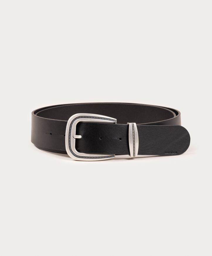 Elegant i sofisticat, aquest cinturó està confeccionat amb pell d’alta qualitat i compta amb una sivella platejada amb passador metàl·lic, fabricat amb plata vella amb un acabat envellit i exclusiu. Perfecte per aportar un toc distintiu a qualsevol look, combinant estil i funcionalitat. Ideal tant per a ocasions formals com per al dia a dia.