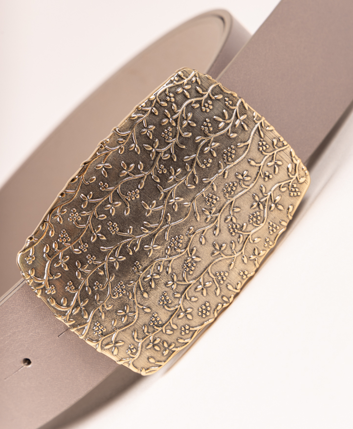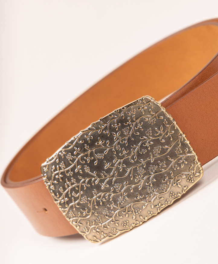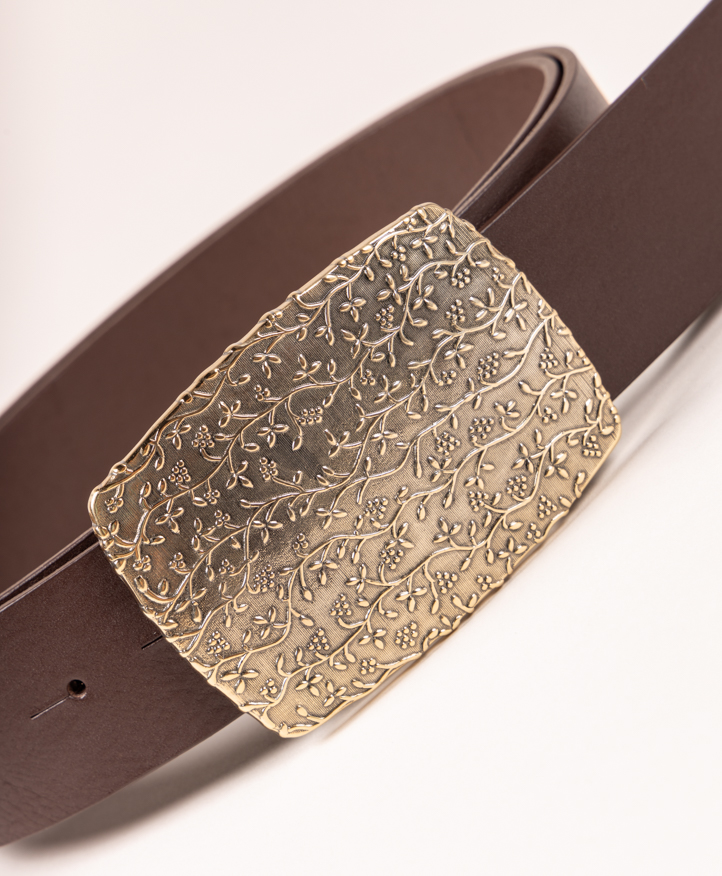 Ceinture en cuir véritable de qualité avec une belle boucle bijou, couleur or clair et décorée de motifs floraux. Une ceinture très élégante qui se combine avec tous vos vêtements, donnant un air sophistiqué à tous vos looks.