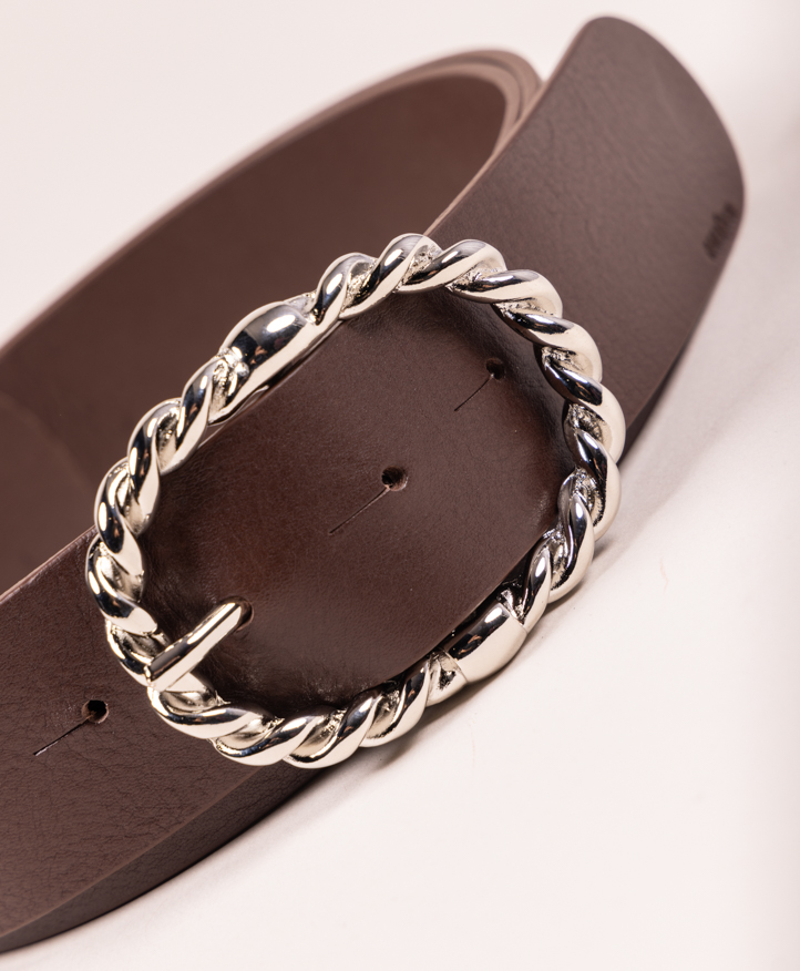 Ceinture élégante pour femme fabriquée en cuir de première qualité avec une belle boucle en argent en forme ovale. Son design en cordon entrelacé ajoute une touche artisanale, fusionnant le classique et le moderne. C’est la ceinture parfaite pour compléter n’importe quelle tenue avec une touche sophistiquée et distinctive.