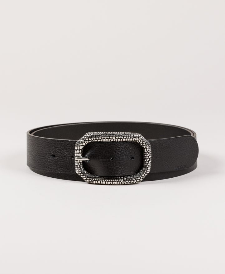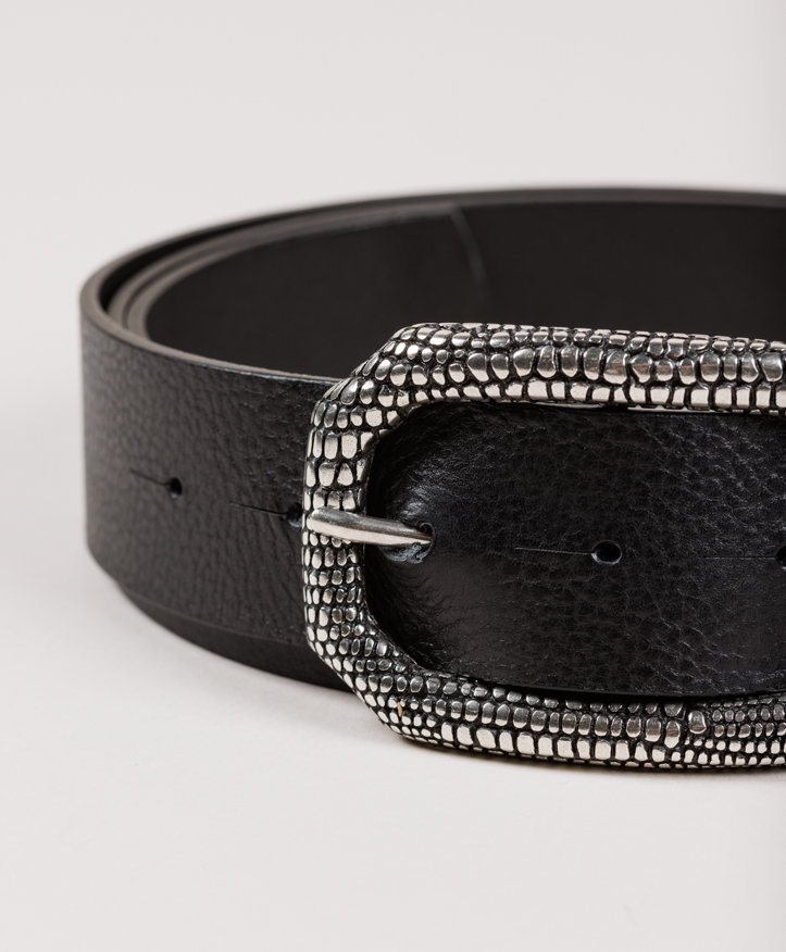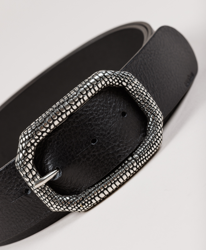 Ceinture élégante pour femme en cuir de haute qualité avec une belle boucle bijou en argent avec gravure de lézard. Une ceinture très facile à combiner. Sa boucle argentée carrée vous permet de l’associer avec des pantalons, des jupes ou des robes. Le modèle de ceinture idéal pour sublimer toutes vos tenues.