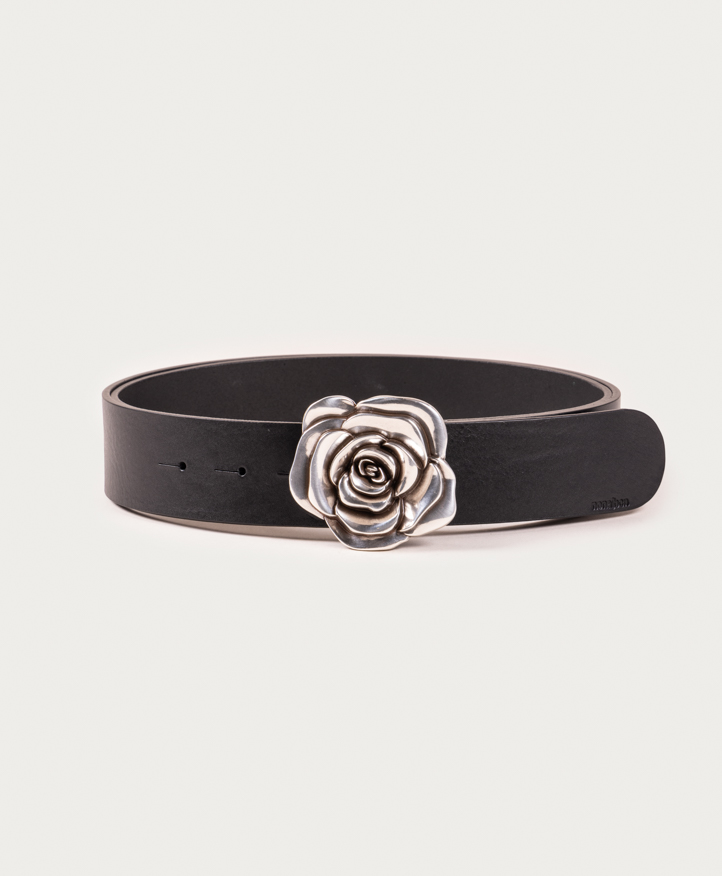 Magnifique ceinture en cuir avec boucle fleur en métal argenté, un véritable bijou. Désormais, votre ceinture préférée sera le protagoniste de tous vos looks, devenant ainsi votre meilleure alliée pour vous habiller.