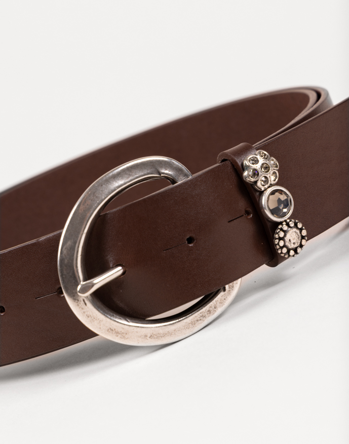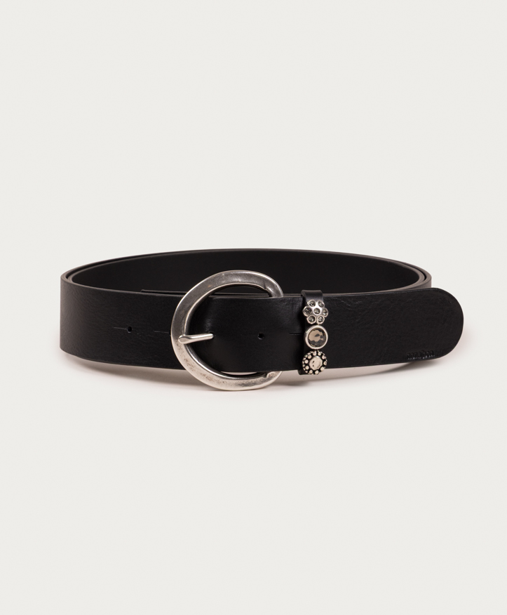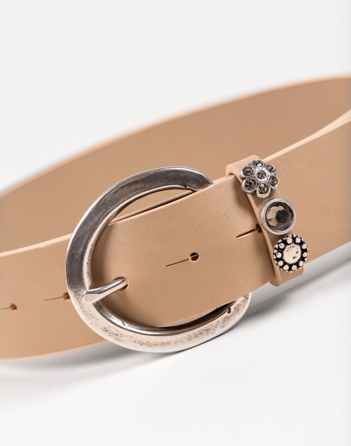 Cinturón Santorini. Hebilla plateada con trabilla decorada.